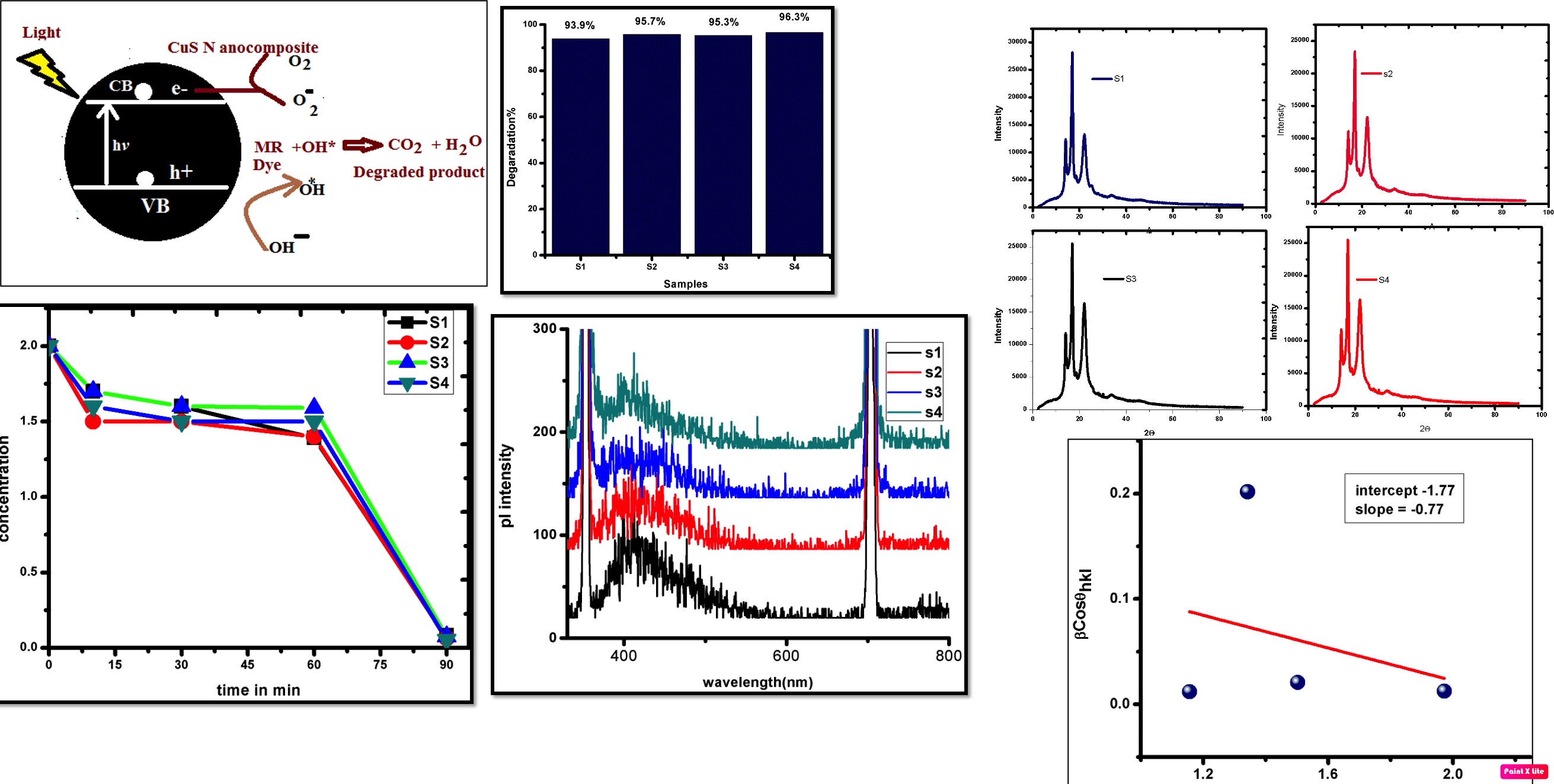 - Estimated bandgap energy of 2.05 eV for slightly sulfur-rich CuS NPs, indicating miniaturization effect exhibited Exceptional photocatalytic activity of CuS NPs in degrading methyl Red (MR) under visible light.